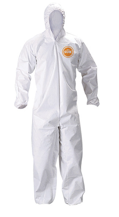 Overol desechable, Material polietileno y polipropileno, Fabricado en tela microporosa color blanco, con elástico en los puños, tobillos y capucha, para mejorar su ajuste, cuenta con zipper al frente. Protección en usos generales, por los materiales del que está hecho, permite que sea un overol cómodo y permeable, además de proteger contra grasas, polvos, aerosoles y líquidos, resistente a muchas partículas químicas. Caja C/25 Piezas.