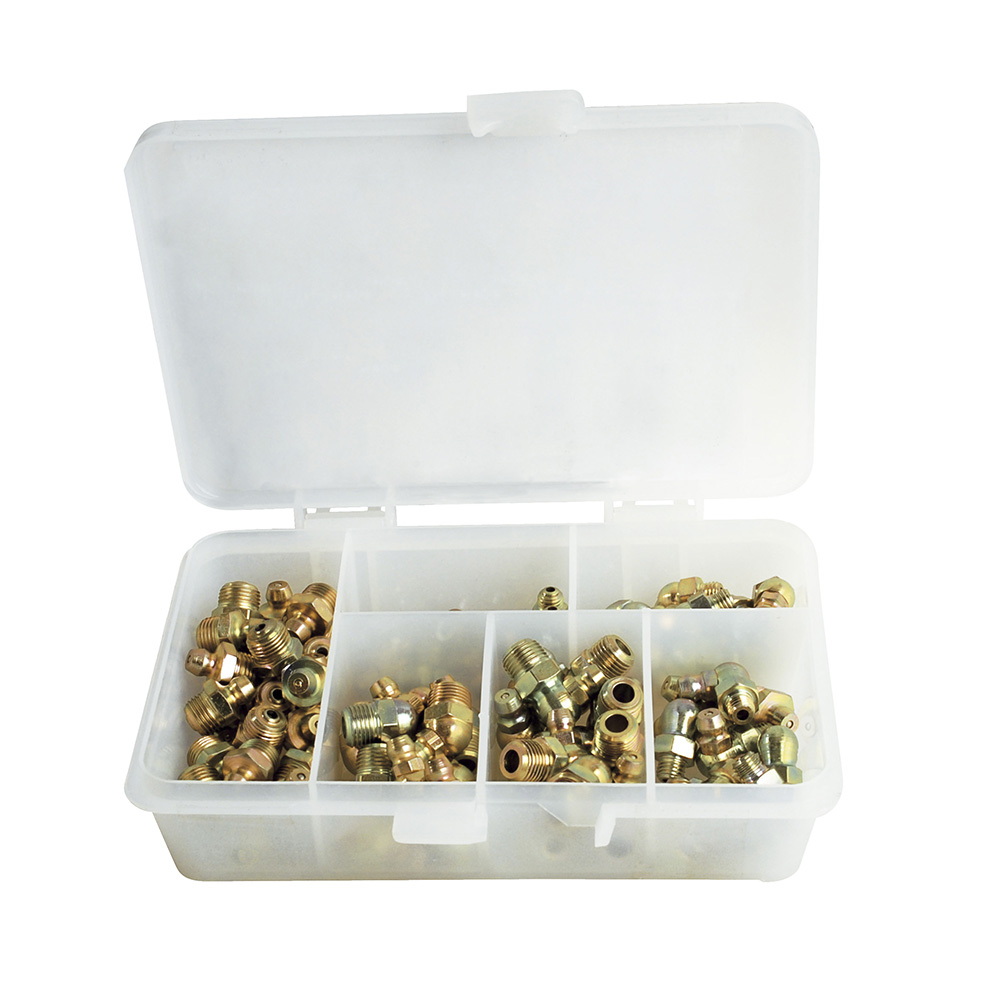 -Juego de graseras 80 piezas Urrea -Máxima durabilidad: bola check de acero accionada con resorte endurecido recubrimiento de zinc resistente a la corrosión