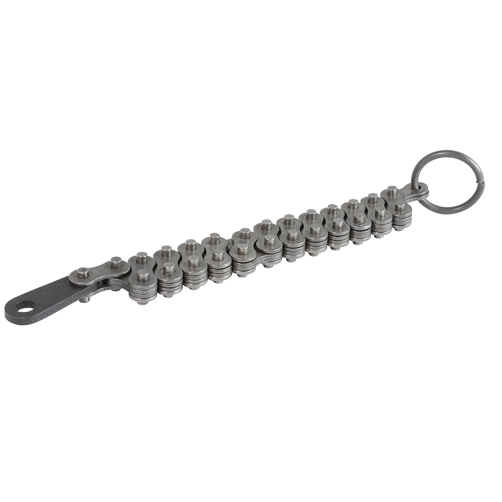 -Esta llave ofrece una rápida y fuerte sujeción en posiciones difíciles, como en tuberías que están muy cercanas una de la otra o dentro de una zanja o canaleta -Mordaza de acero forjado dentado por las 2 caras -Cadena de gran capacidad de sujeción con eslabón 2" x 2" de alta resistencia